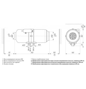 Отопитель требует подключения к сети постоянного тока 12В. Забор топлива производится по топливопроводу, который может заводиться в штатный бак с помощью топливозаборника, или же в отдельный бак.